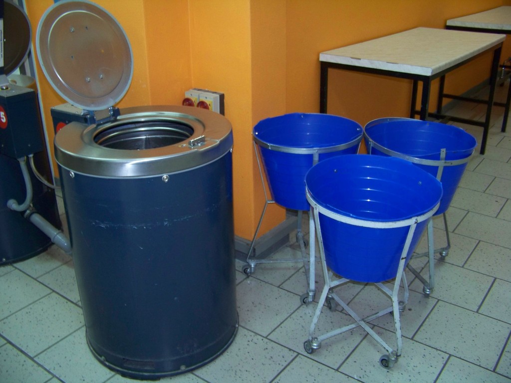 Ebenfalls haben wir 2 große Schleudern. Diese schleudern mit 1600 U/Min. die Wäsche.